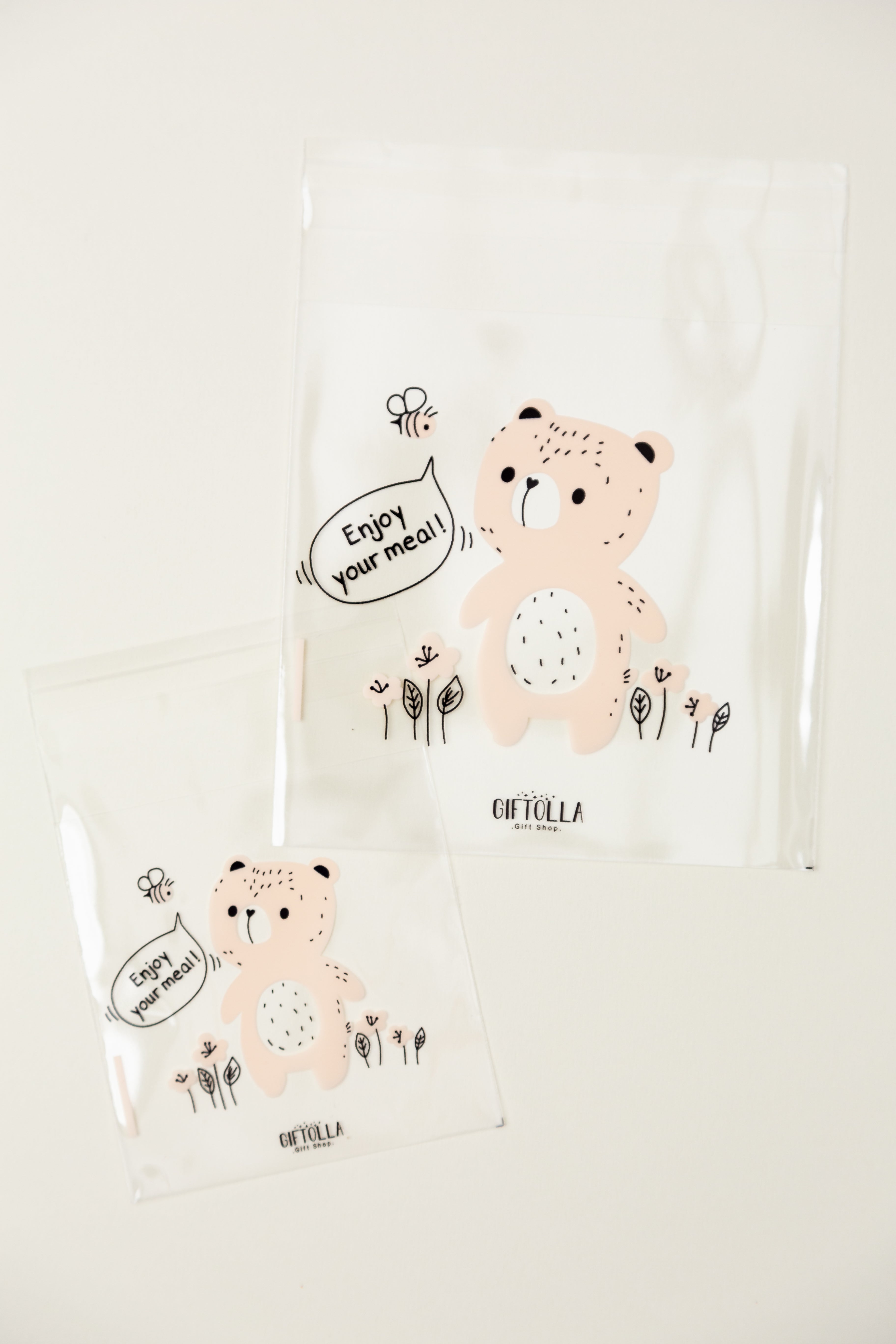 اكياس السيلوفان ذاتية اللصق، وسهلة الاستخدام. ازيلي الشريط اللاصق، ضعي الطعام، ثم اغلقي الكيس.