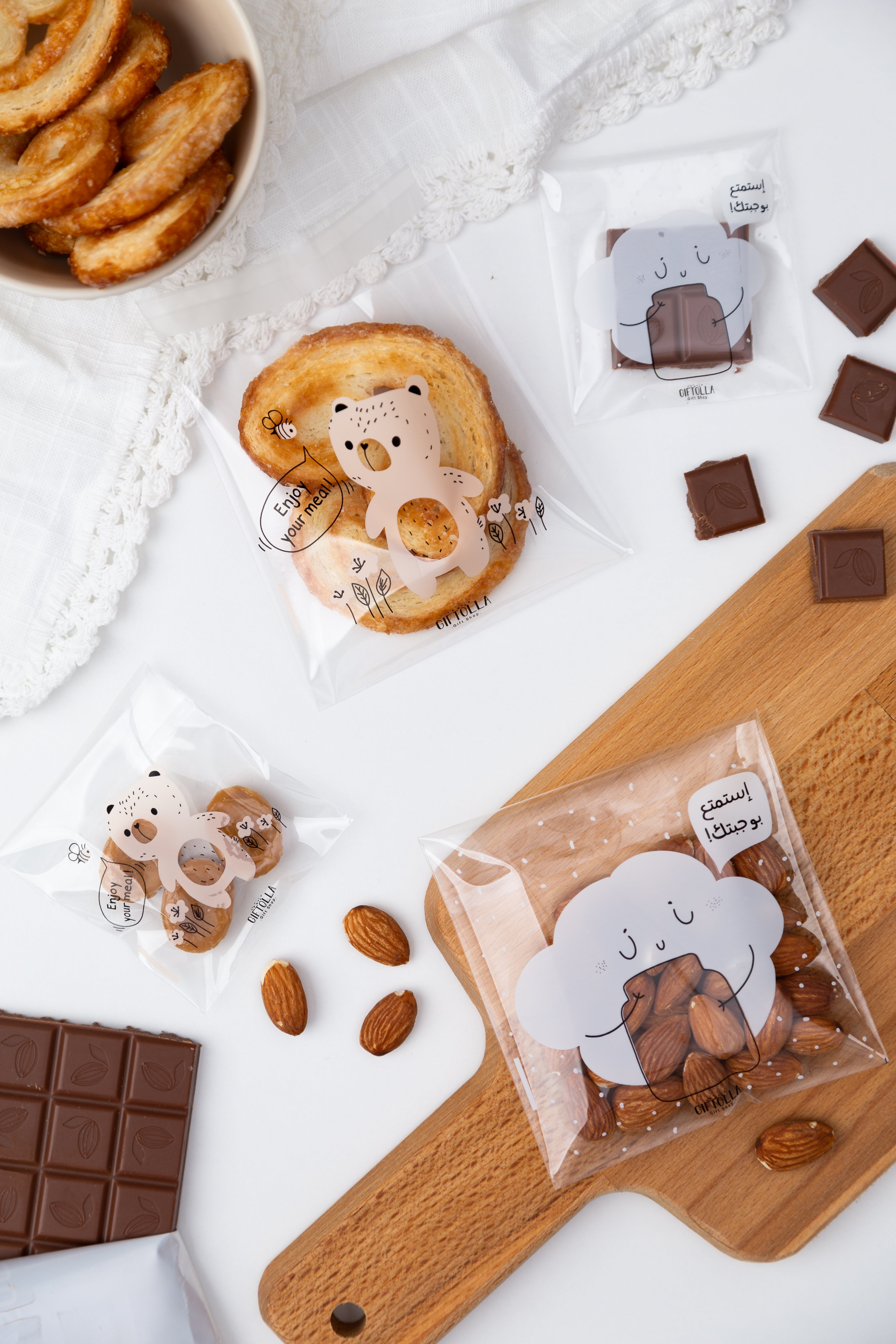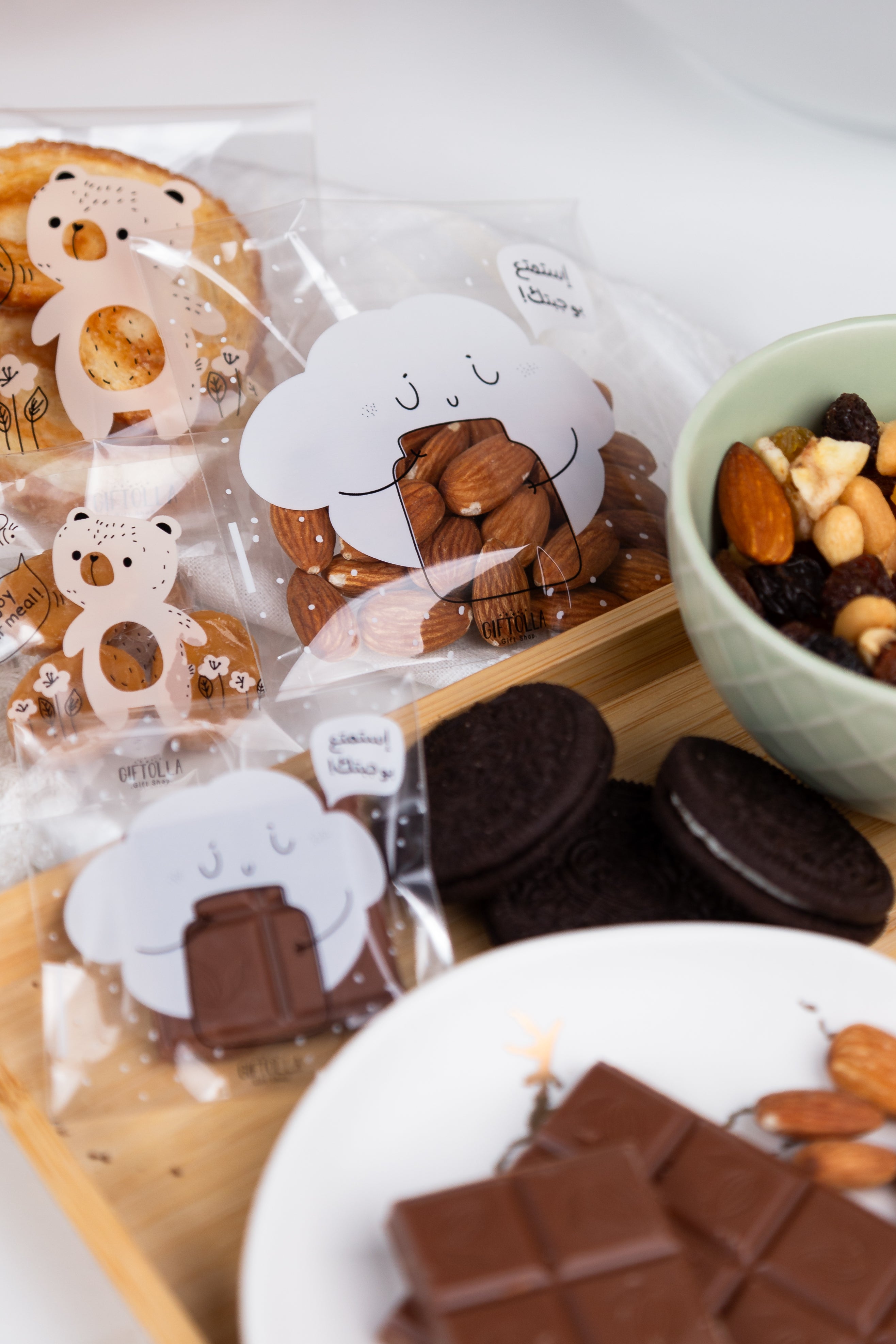 بإمكانك وضع المكسرات، التمر، البسكويت، حبيبات الجلي، رقائق الذرة، طابات الشوكولا الصغيرة، الكرز وغيرها الكثير…. 🍎🫐🍒🥨🍡🍬🍫🍭🥜🫘🍪🍩