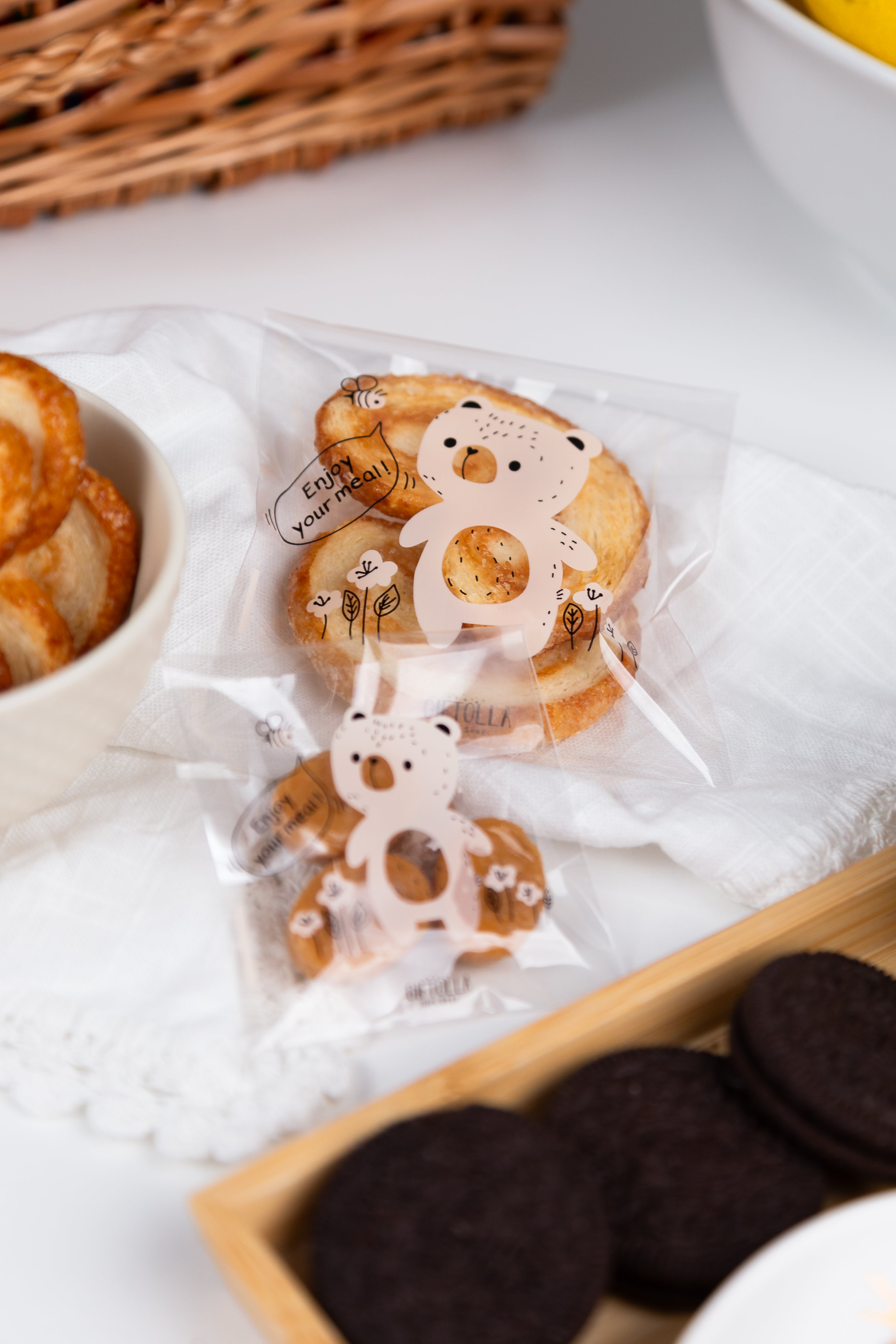 ضعي البسكويت أو الحلوى المفضلة لديهم في أكياس النايلون المريحة لوجبة غذاء لذيذة في وقت الإستراحة. 🥨🍒